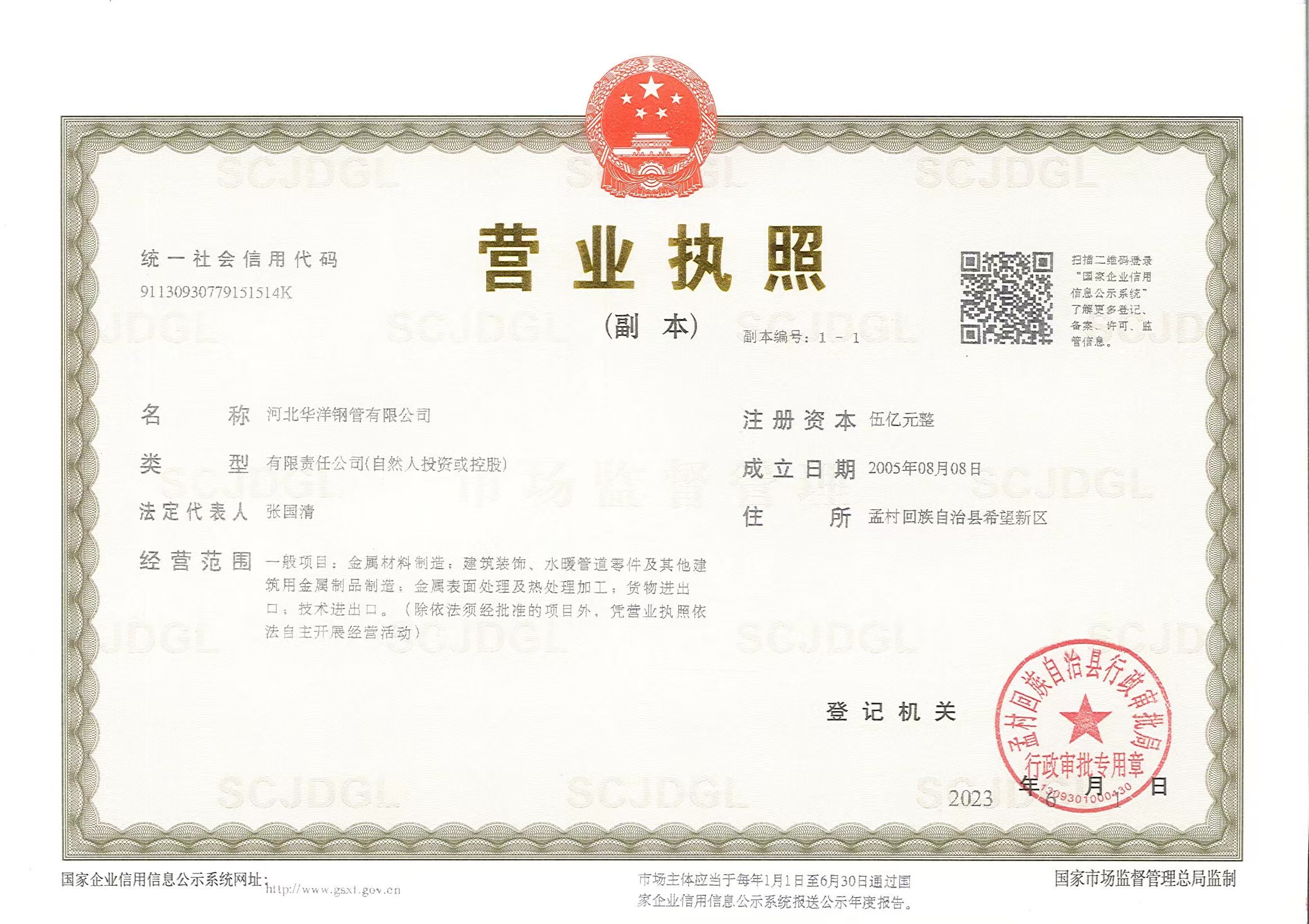 公司產(chǎn)品主要用于石油、天然氣、水、蒸汽、煤氣等高、中、低壓流體輸送管道及打樁、橋梁、建筑等結(jié)構(gòu)用鋼管,并承擔(dān)了國(guó)內(nèi)外標(biāo)志性工程建設(shè),華洋作為一個(gè)綜合型生產(chǎn)企業(yè),下設(shè)河北銘高貿(mào)易有限公司,以及在天津石家莊、山東、四川、廣州等地設(shè)立有3家分公司和5個(gè)辦事處。產(chǎn)品銷往各個(gè)城市井出口東南亞、中東、歐美等八十多個(gè)地區(qū),在國(guó)內(nèi)外享有很高的聲譽(yù)。