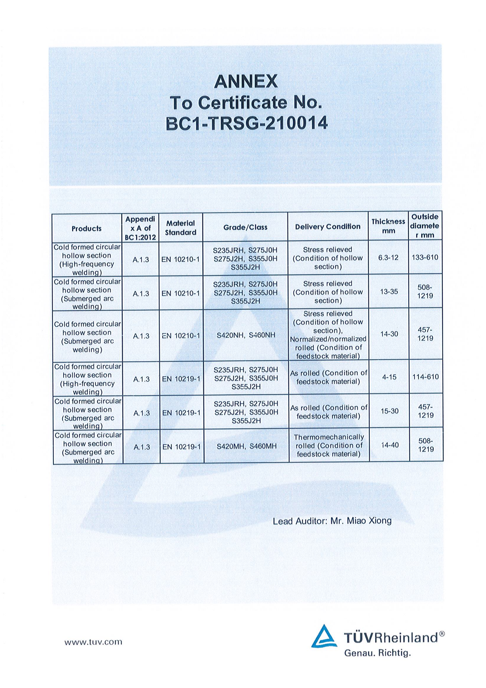 公司現(xiàn)有17條新型的自動(dòng)化鋼管生產(chǎn)線,包括Φ73-660.4高頻直縫焊鋼管生產(chǎn)線14條、Φ406.4-Φ1422.4直縫雙面埋弧焊鋼管生產(chǎn)線3條,并配備有一條防腐生產(chǎn)線,可進(jìn)行3PE、2PE、FBE、2PP、3PP防腐處理,同時(shí)還可提供鋼管深加工服務(wù)。公司擁有先進(jìn)的理化實(shí)驗(yàn)室,可承擔(dān)鋼管的各項(xiàng)物理及化學(xué)檢測(cè)與試驗(yàn)。公司先后取得了ISO9001質(zhì)量管理體系認(rèn)證、ISO14001環(huán)境管理體系認(rèn)證、ISO45001職業(yè)健康安全管理體系認(rèn)證、特種設(shè)備制造許可證、API5L和API2B認(rèn)證證書(shū)、歐盟CE認(rèn)證、俄羅斯GOST認(rèn)證、中海油入網(wǎng)證、安全生產(chǎn)標(biāo)準(zhǔn)化二級(jí)企業(yè)等標(biāo)準(zhǔn)質(zhì)量體系認(rèn)證。